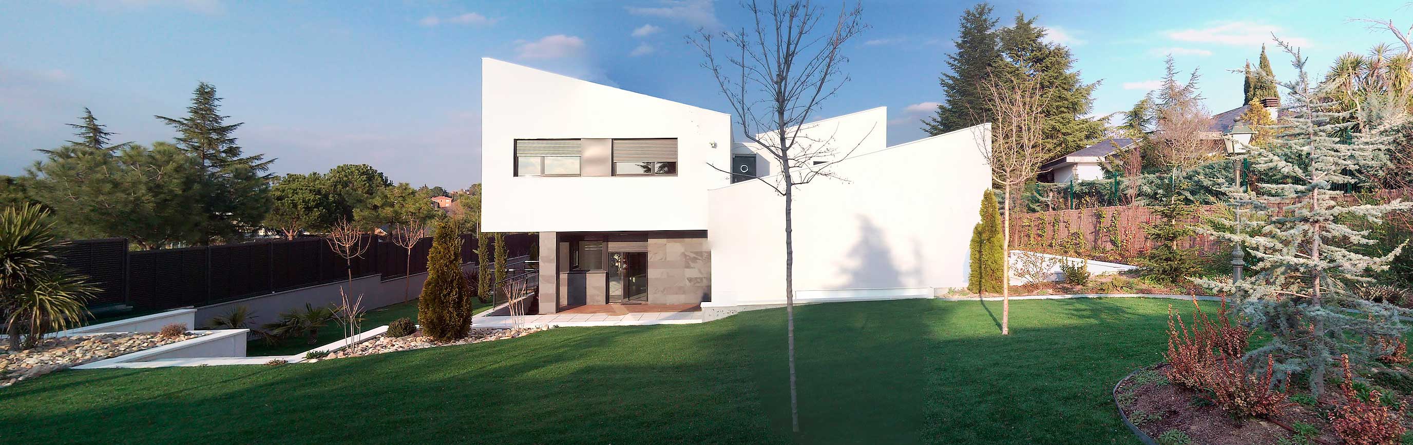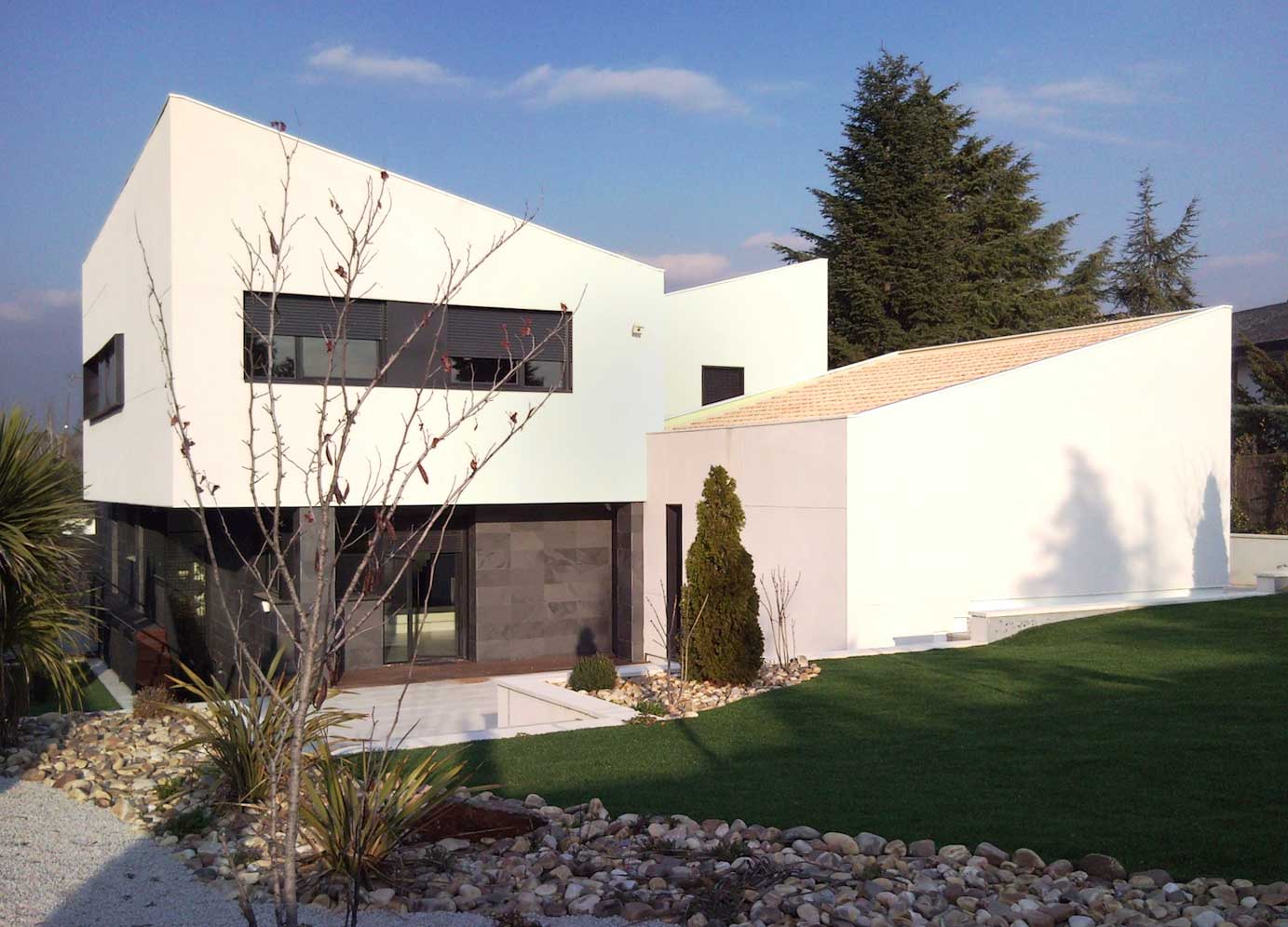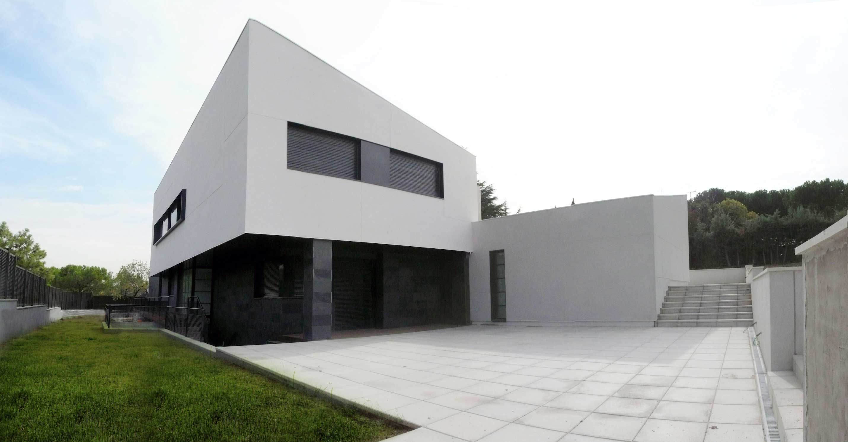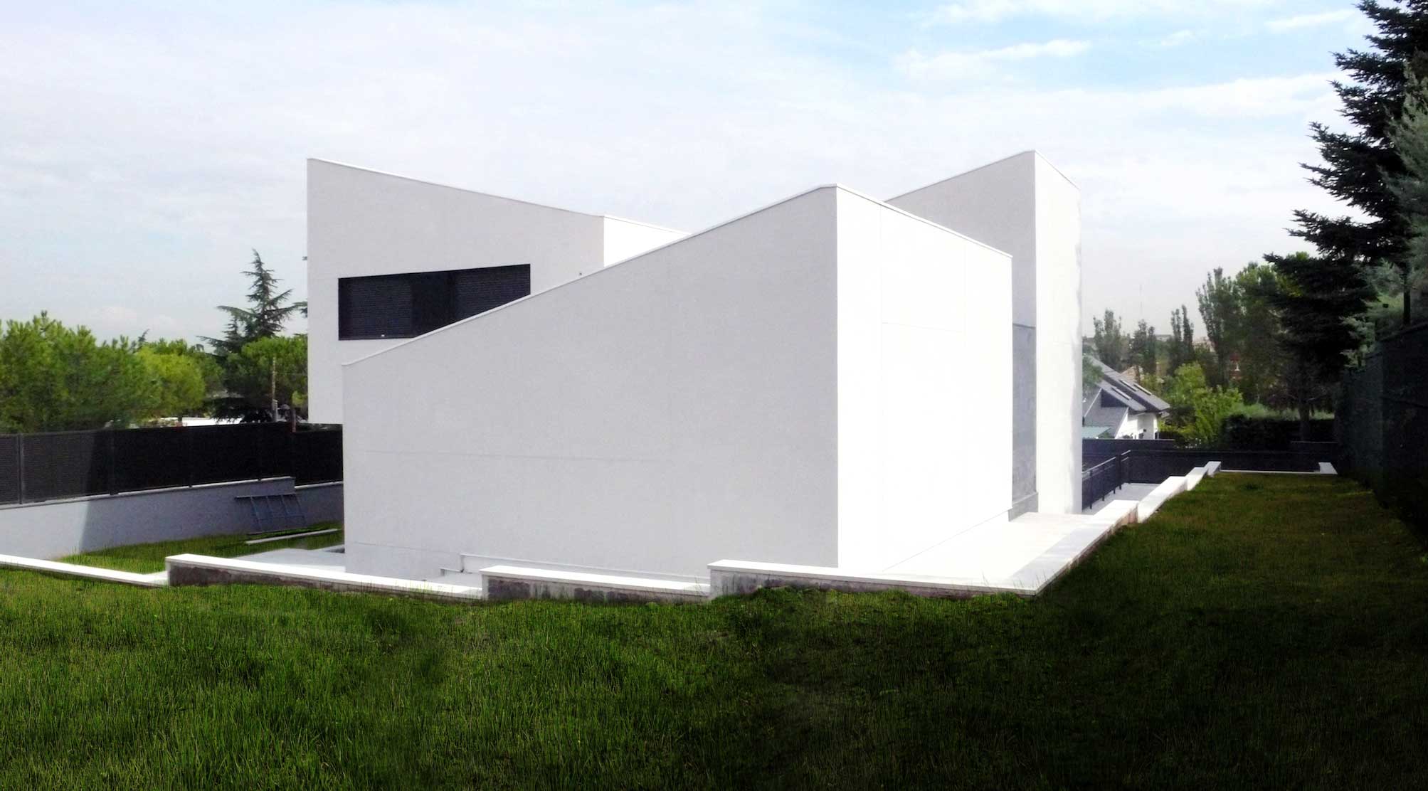 Vivienda ubicada en Boadilla del Monte. Su configuración programática y volumétrica viene definida por la necesidad de ubicar un estudio de grabación que alberga un órgano de 8 metros de altura, profesión del propietario de la vivienda. Este estudio se convierte en un iceberg empotrado en el terreno que deja ver solo una parte mínima del mismo, una parte que sale a respirar y a mirar al mundo. Utilizamos el lenguaje de Breuer, unas cubiertas en alas de mariposa que realmente es lo que dota de personalidad a la volumetría de la edificación. En planta, la vivienda, que quiere caminar, se disloca y avanza, cohesionada por el nexo común del estudio de música.