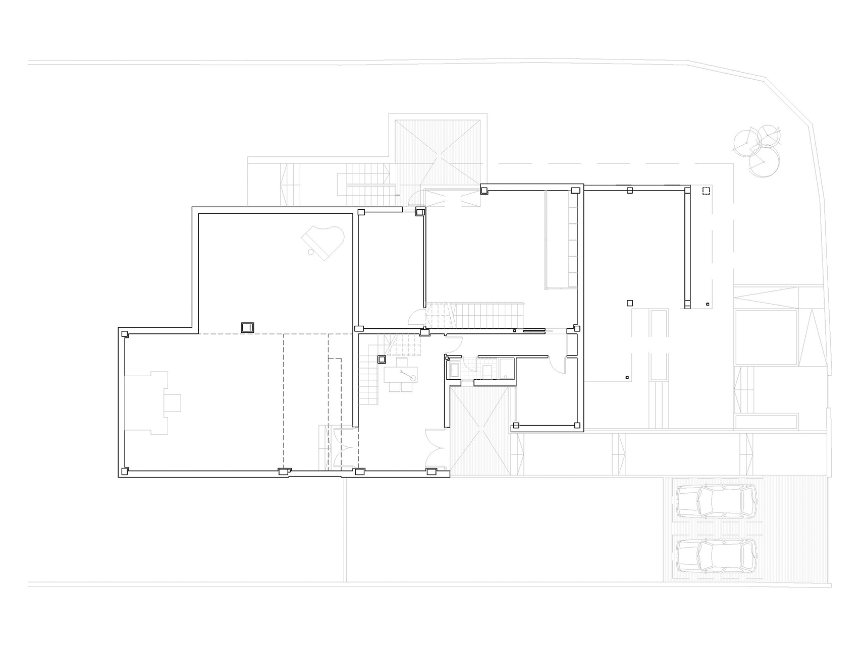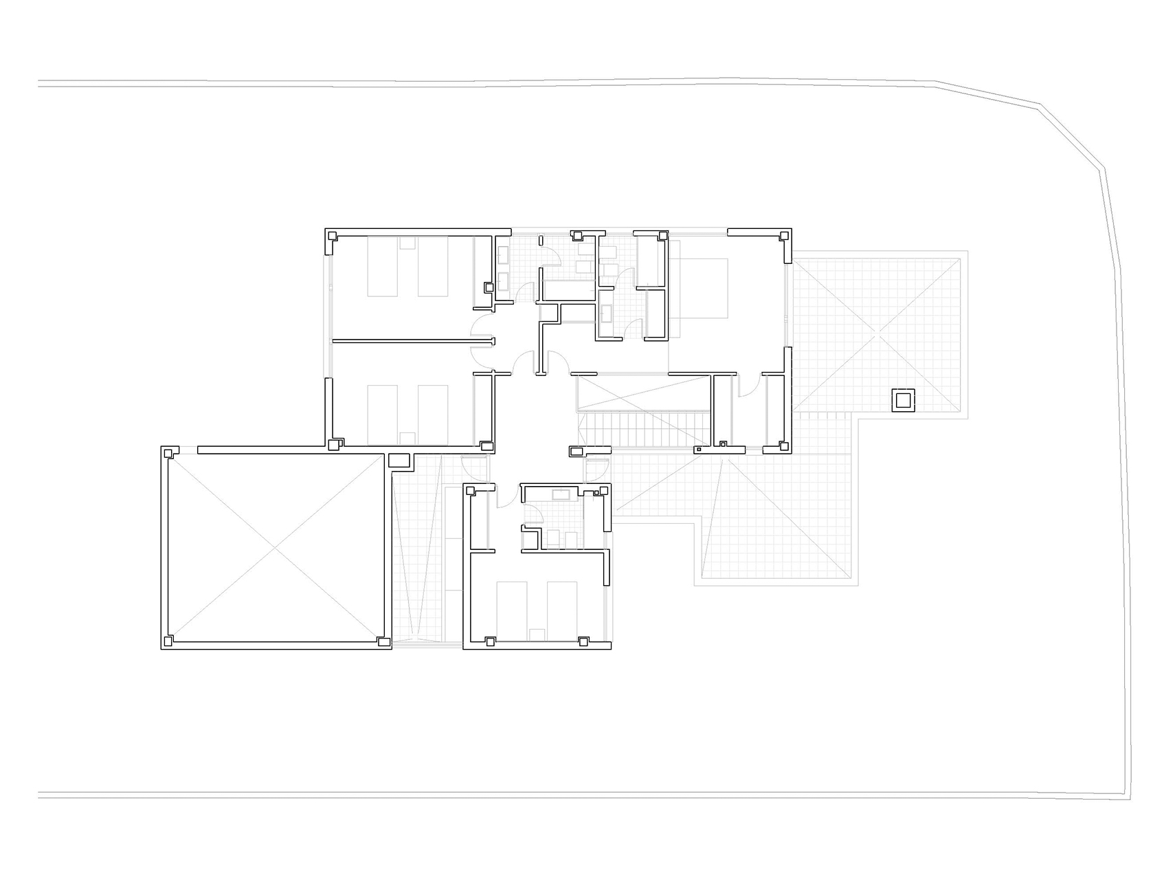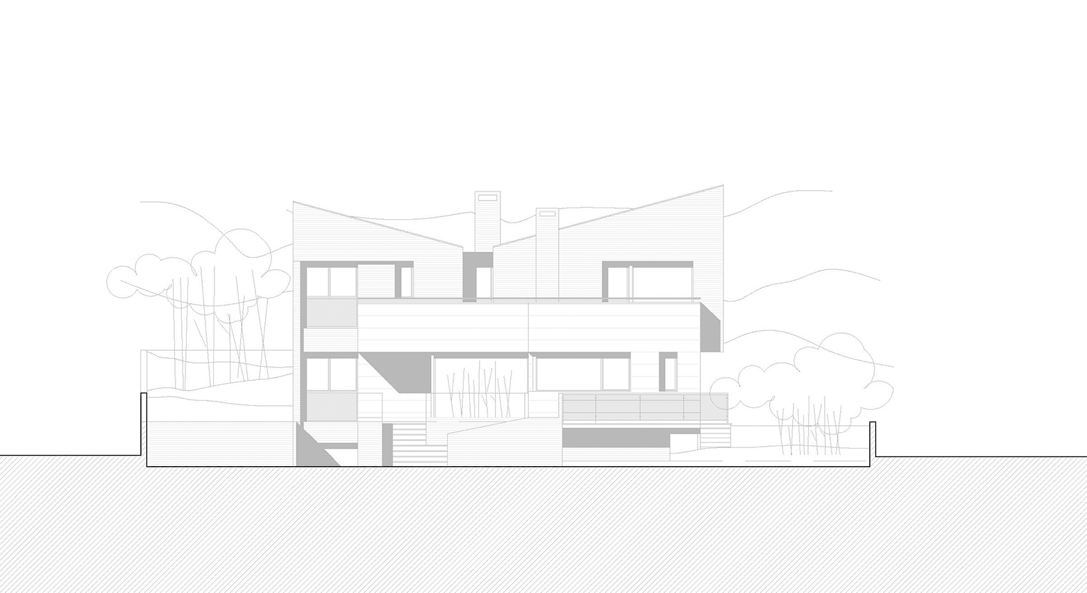 Vivienda ubicada en Boadilla del Monte. Su configuración programática y volumétrica viene definida por la necesidad de ubicar un estudio de grabación que alberga un órgano de 8 metros de altura, profesión del propietario de la vivienda. Este estudio se convierte en un iceberg empotrado en el terreno que deja ver solo una parte mínima del mismo, una parte que sale a respirar y a mirar al mundo. Utilizamos el lenguaje de Breuer, unas cubiertas en alas de mariposa que realmente es lo que dota de personalidad a la volumetría de la edificación. En planta, la vivienda, que quiere caminar, se disloca y avanza, cohesionada por el nexo común del estudio de música.
