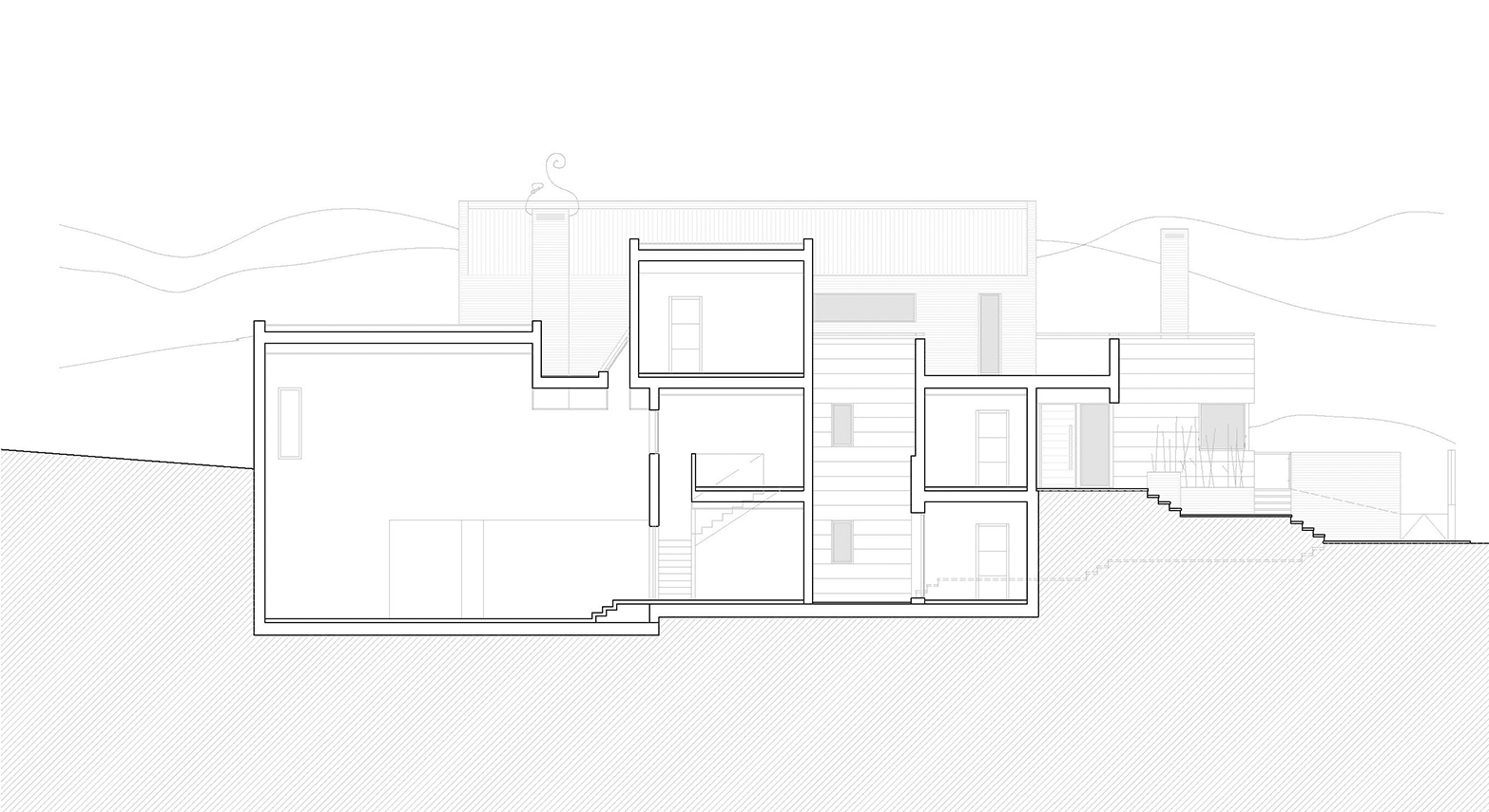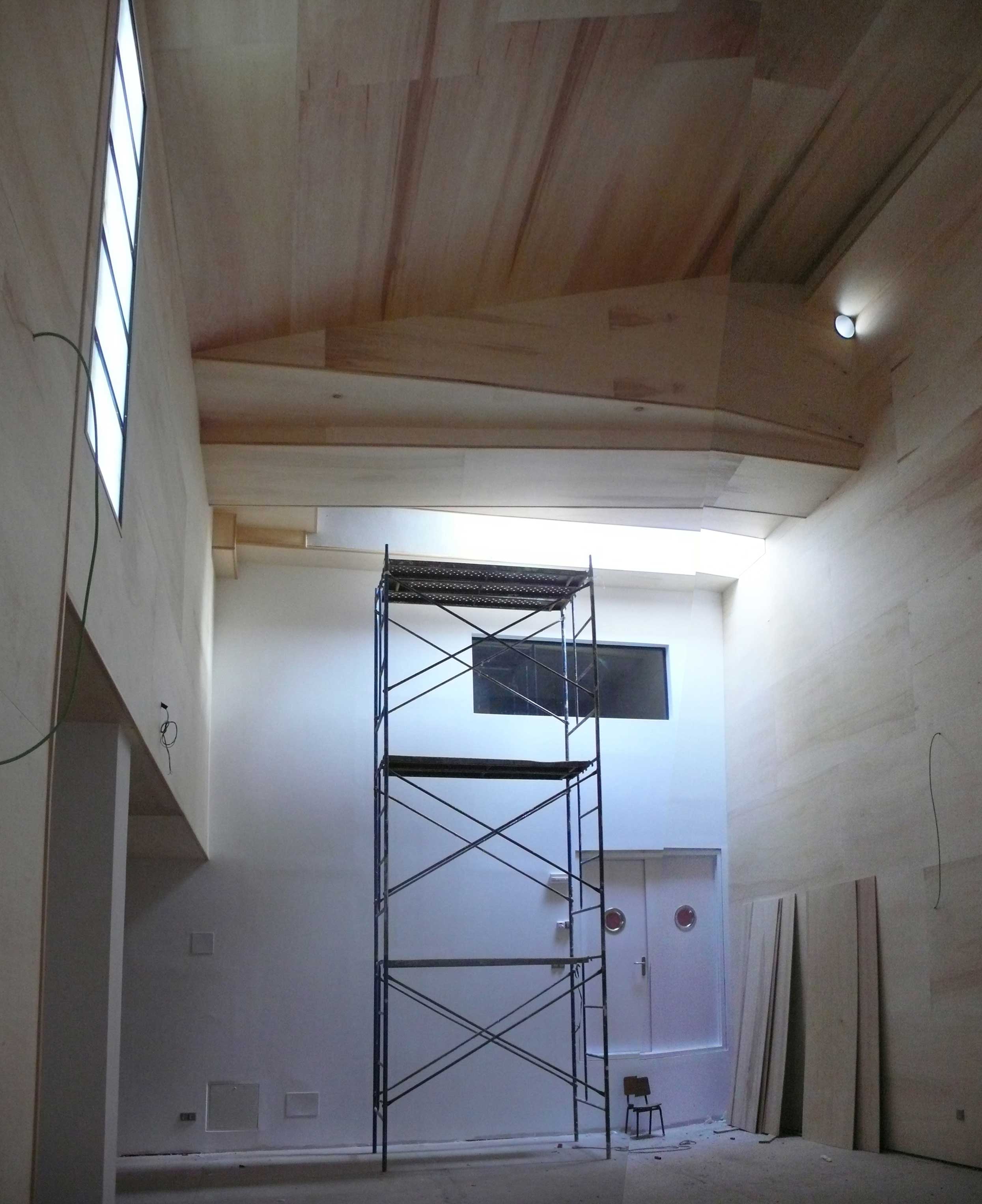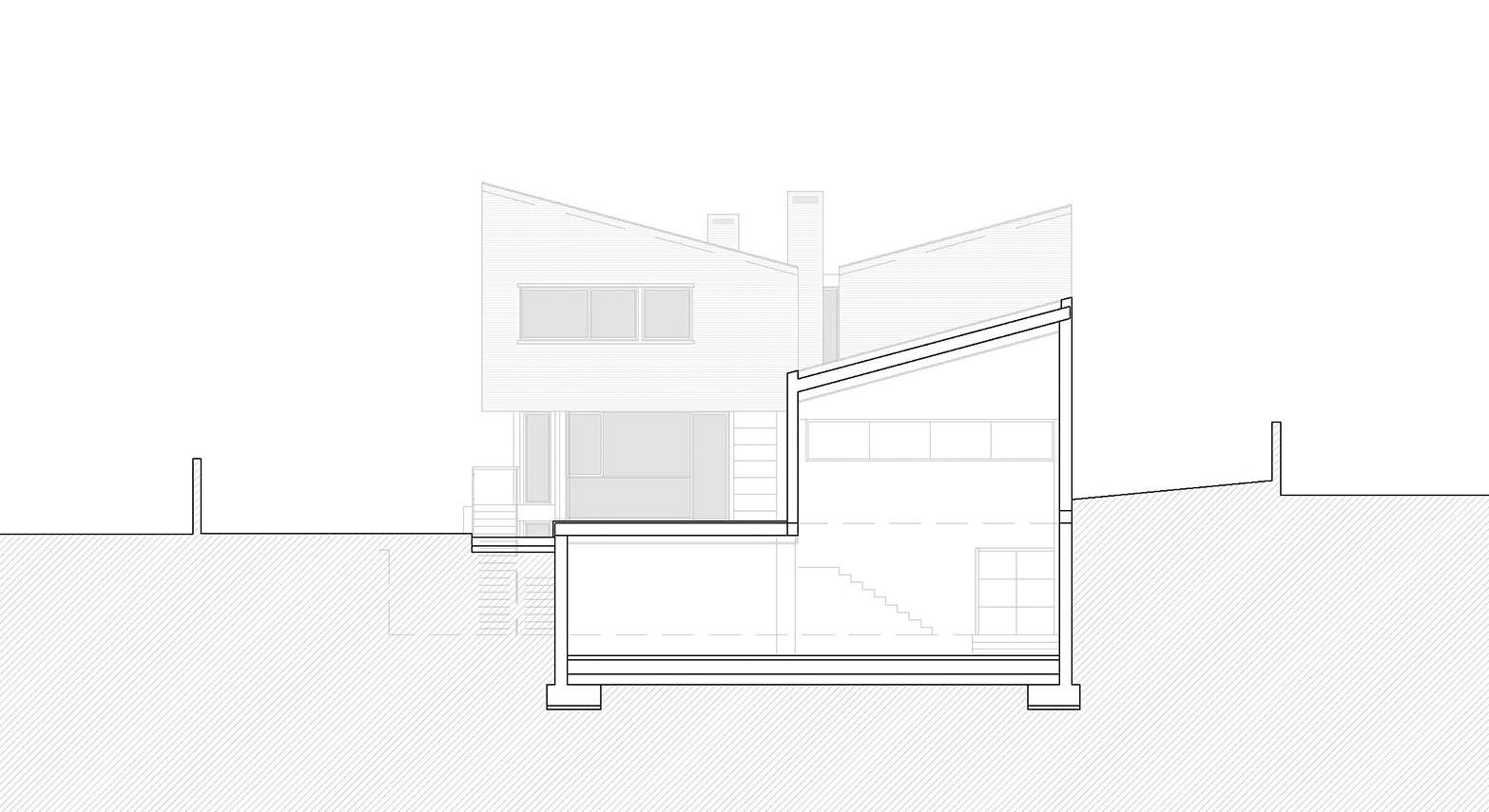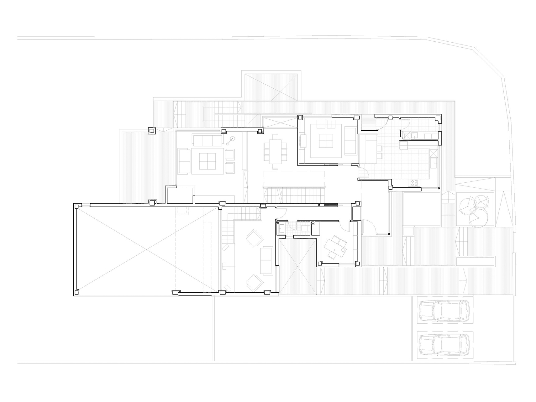 Vivienda ubicada en Boadilla del Monte. Su configuración programática y volumétrica viene definida por la necesidad de ubicar un estudio de grabación que alberga un órgano de 8 metros de altura, profesión del propietario de la vivienda. Este estudio se convierte en un iceberg empotrado en el terreno que deja ver solo una parte mínima del mismo, una parte que sale a respirar y a mirar al mundo. Utilizamos el lenguaje de Breuer, unas cubiertas en alas de mariposa que realmente es lo que dota de personalidad a la volumetría de la edificación. En planta, la vivienda, que quiere caminar, se disloca y avanza, cohesionada por el nexo común del estudio de música.